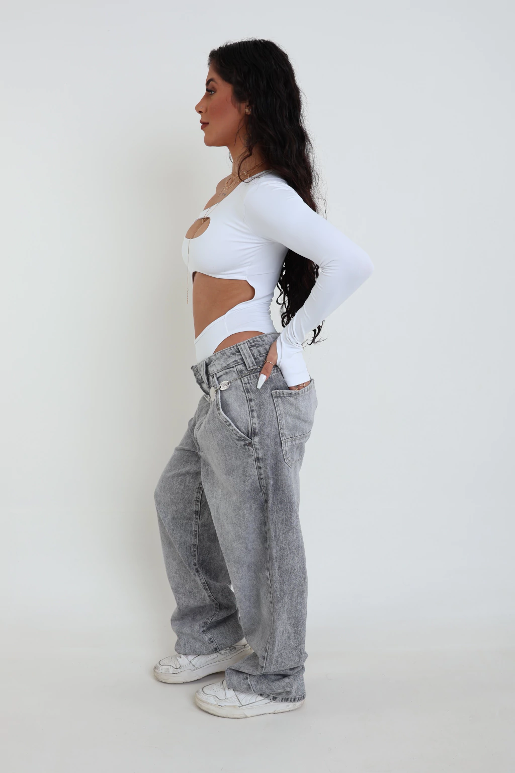 Calça Cintura Baixa Cinza: Uma peça essencial para aqueles que valorizam estilo e funcionalidade.