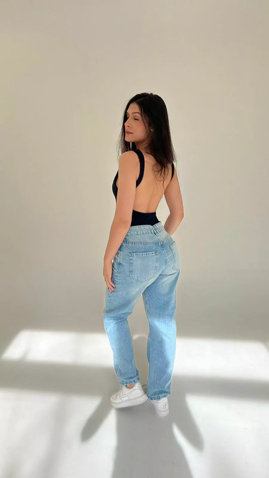 Calça Cintura baixa dependendo do tamanho que você comprar, amiga. Tem um detalhezinho no bolso.
