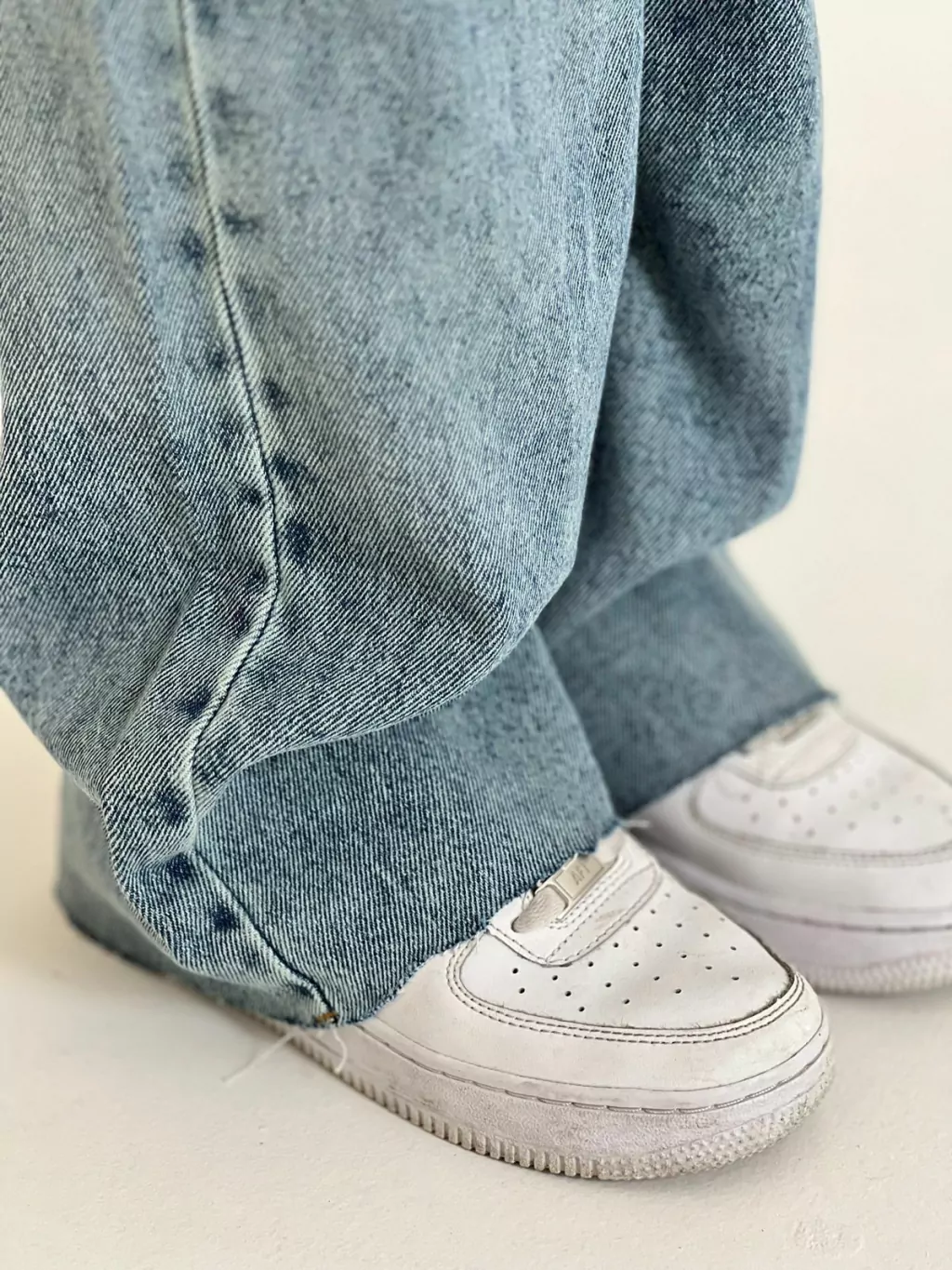 Essa calça reta é feita em jeans de lavagem azul médio, oferecendo um equilíbrio entre o casual e o clássico. O corte reto proporciona um caimento alinhado e confortável, ideal para diferentes tipos de corpo. A barra desfiada adiciona um toque despojado e contemporâneo ao design, tornando a peça moderna e cheia de estilo. Com cintura média ou alta, dependendo do tamanho escolhido, ela é confeccionada em 100% algodão.