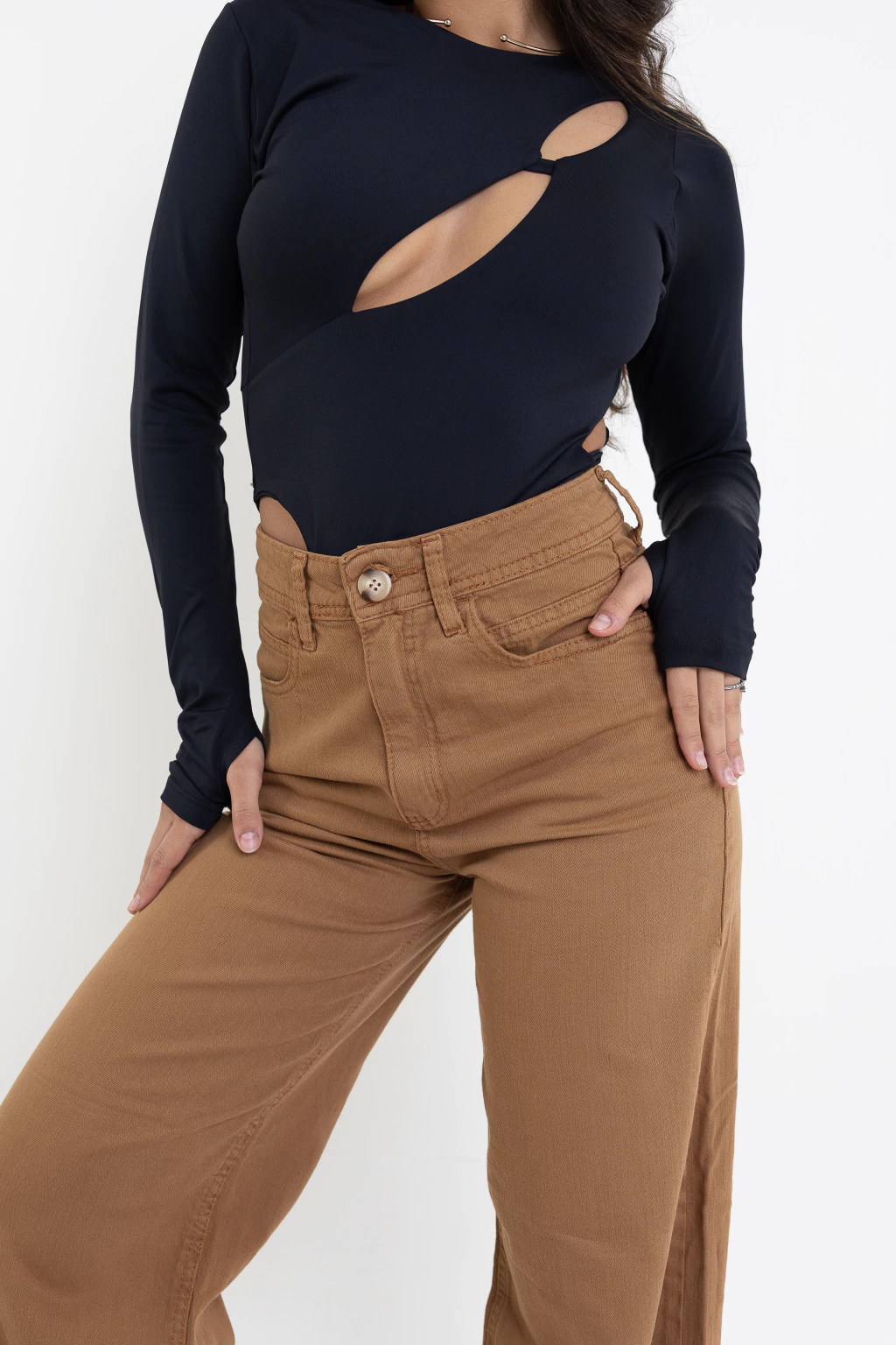 Calça Wide Café Aria: Uma peça essencial para aqueles que valorizam estilo e ser básica.